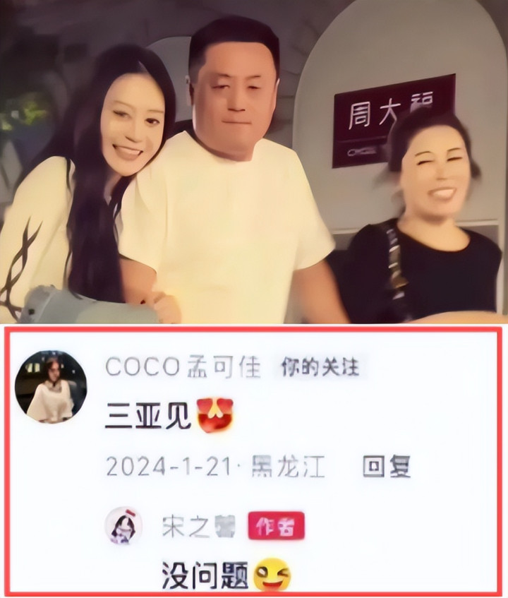 在宋之馨的视频下方,还能看见两人曾亲密相约“三亚见”。